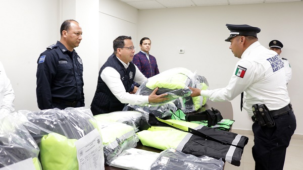 Las autoridades municipales entregaron dos juegos de equipamiento a cada elemento vial.